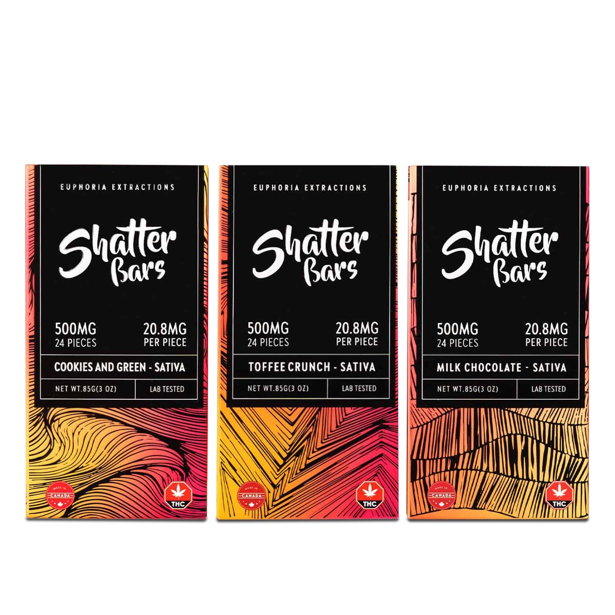 Embark on a journey of elevated euphoria with Euphoria Extractions Sativa Shatter Bars. Carefully crafted using premium full spectrum cannabis shatter, each sumptuous chocolate bar promises an experience of upliftment and relaxation. With 500mg of THC in every bar, prepare to elevate your senses and indulge in blissful delight.